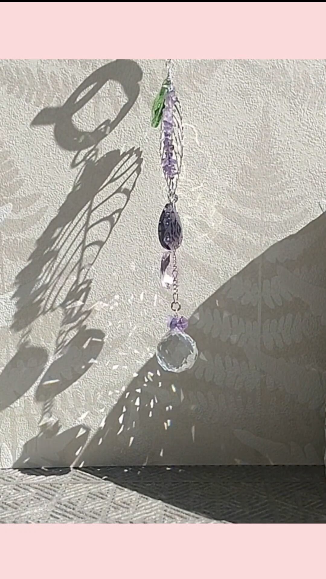ミニサンキャッチャーは、太陽の光を取り込み、煌めく光のプリズムを生み出す魅力的なアイテムです。本商品には天然石のアメジストを使用しており、深い紫色が心を落ち着ける効果をもたらします。アメジストはヒーリング効果が高いとされ、ストレスを和らげるとされています。小さなサイズは、リビングや寝室、オフィスなど、お好きな場所に飾ることができ、日常に彩りを加えてくれることでしょう。